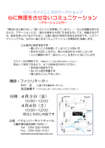 4/3(金)・4(土)心のワークショップ(心に無理をさせないコミュニケーション)10:30-12:00
